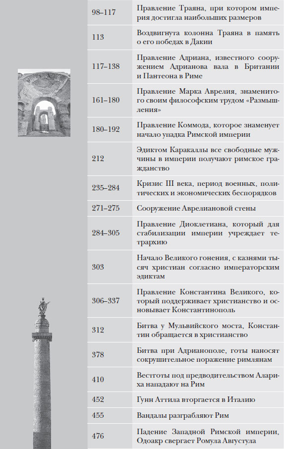 От римлян осталось гораздо больше, чем загрязнение воздуха, серебряные монеты и затонувшие сокровища. Они также оставили нам свою политику, законы, философию, архитектуру и – для многих стран – основы или следы своего языка. Они дали нам римские цифры, дни недели, месяцы, водопроводы, напольное отопление и бетон. Наряду с греками, с которыми римляне находились в культурном симбиозе, они заложили политические, интеллектуальные и художественные основы западной цивилизации. Они были умелыми инженерами и блестящими военными тактиками. Римские врачи, привыкшие работать с ранами гладиаторов и с жертвами эпидемий, были пионерами медицины. Изобретение водонепроницаемого бетона – его делали из вулканического пепла, например с Везувия, – позволило римлянам воздвигать великолепные, вызывающие шок и трепет сооружения, а также строить гавани и порты, способствовавшие расширению торговли в дальние земли.