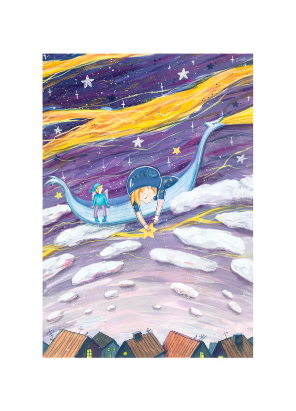 Когда волшебная колесница, рассыпая блики, заскользила по ночному небу, Мика взбодрился. Они миновали низкие серые облака, и перед путешественниками открылось бескрайнее бархатно-синее небо с миллиардами загадочных звезд.