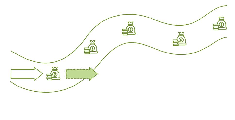 Несложно заметить возникновение цикла, ожидаемая скорость которого – недели. Такой быстрый темп необходим потому, что сама суть движения – в постоянном поиске. На старте, в самом начале, совершенно неизвестно конечное состояние, и, тем более, неизвестна дорога к нему. Долгосрочное планирование не имеет никакого смысла, компания видит лишь следующий, ближайший шаг – точнее, пытается его угадать. Проиллюстрировать данный тезис поможет широко известная метафора, сравнивающая выживание и развитие бизнеса с поиском реки с деньгами (Рис. 3).