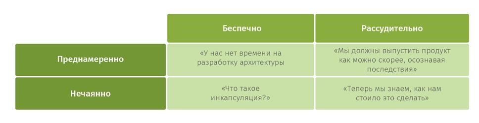 Табл. 1. Классификация технического долга по М. Фаулеру.