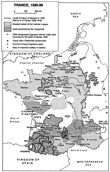 In the early sixteenth century France seemed set to become the most powerful nation in Europe, yet by 1600 she had sunk to one of the lowest points in her history. Half a century of more or less continual civil conflict, allegedly over religion, had brought desolation and despair to her inhabitants. Her economy had been almost destroyed, her society was in disarray and her political system was on the brink of collapse. The very origins of a monarchy, which had once been revered as God’s lieutenancy on earth, were being questioned. Much of the interest that springs from studying sixteenth-century France resides in probing the causes of her precipitous decline. Was religion the only cause of dissension among her people, or were they responding to other factors? Why was a monarchy which had seemed so strong under Francis I and Henry II reduced to little more than an impotent figurehead? These are merely two questions among many that the reader might care to ponder. I hope to provide some answers, but the subject is vast and controversial.