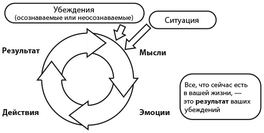 Убеждения влияют на наше восприятие денег в различных жизненных ситуациях, вызывая определенные мысли и эмоции – положительные или отрицательные. На основе этих мыслей и эмоций мы принимаем решения, часто даже не осознавая их причину. Затем действуем в соответствии с принятыми решениями и получаем определенный результат.