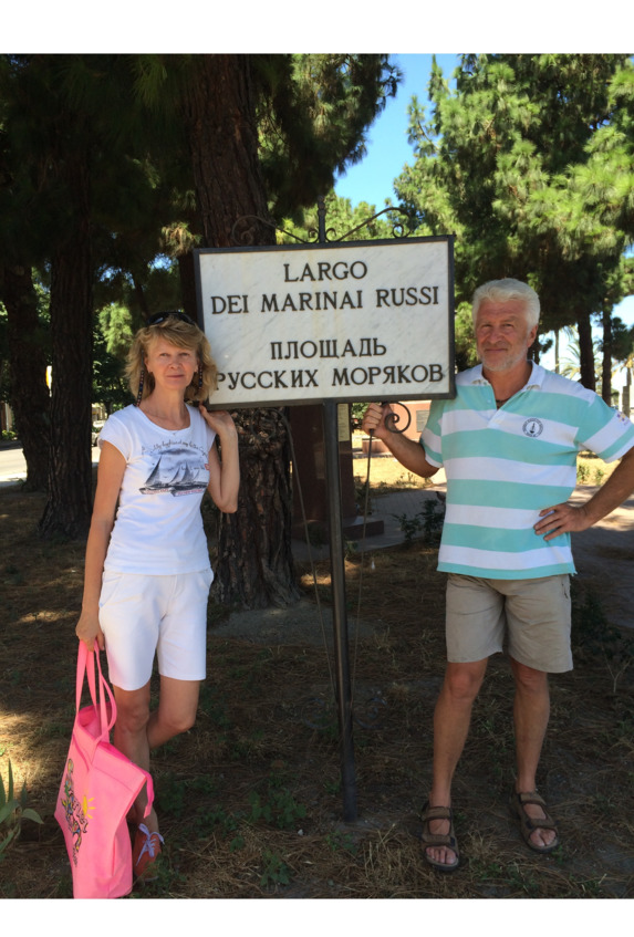Вечером приехала дочка Кожевниковых Ольга с мужем Ильёй. Теперь нас полный комплект, завтра в путь. В Мессине есть площадь Русских Моряков. Когда в 1908 здесь случилось разрушительное землетрясение, первыми, кто пришёл на помощь жителям, были моряки со стоявшего на рейде российского крейсера. Благодарные горожане создали целый мемориал памяти.