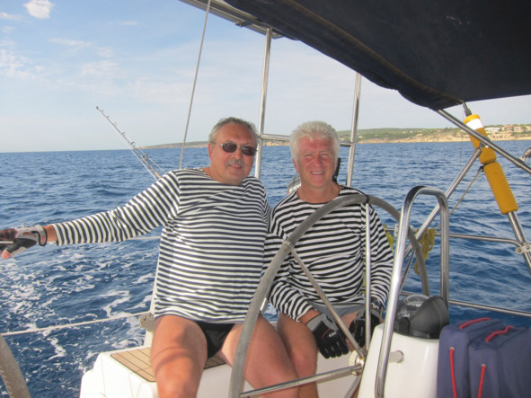 Когда матросы явились на корабль сытые и разогрели мне принесённую из ресторана еду, пришла с моря яхта хозяина места. Пришлось спешно отдать швартовы и идти на заправку. Залили 270 литров по 1.8 евро за литр. Запредельная дороговизна. На ночь ушли в знакомую бухту за мысом на якорную стоянку в компанию двух десятков яхт.