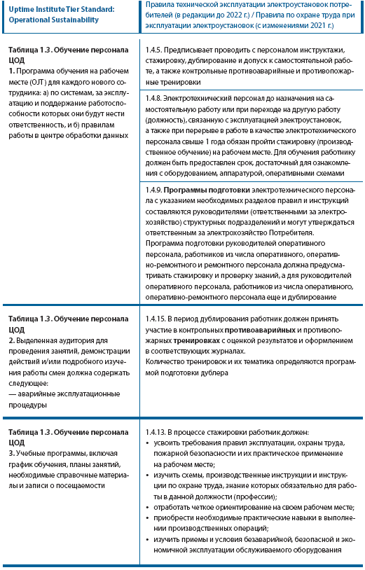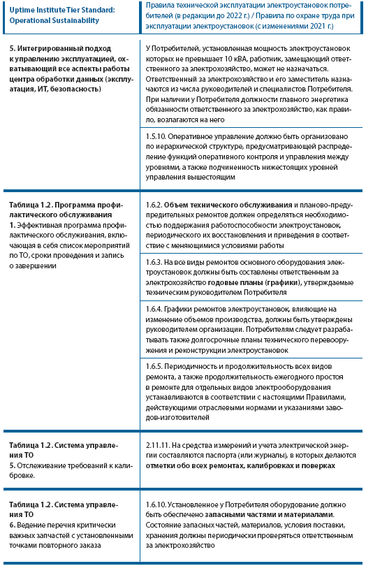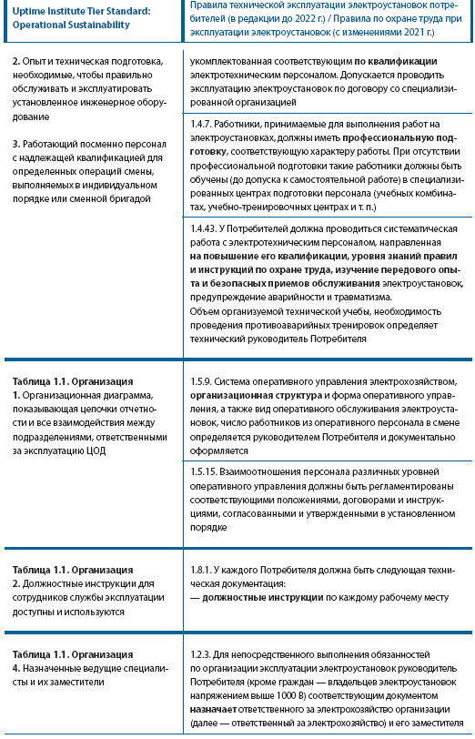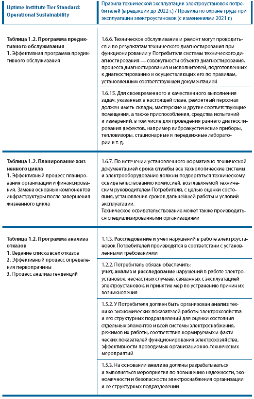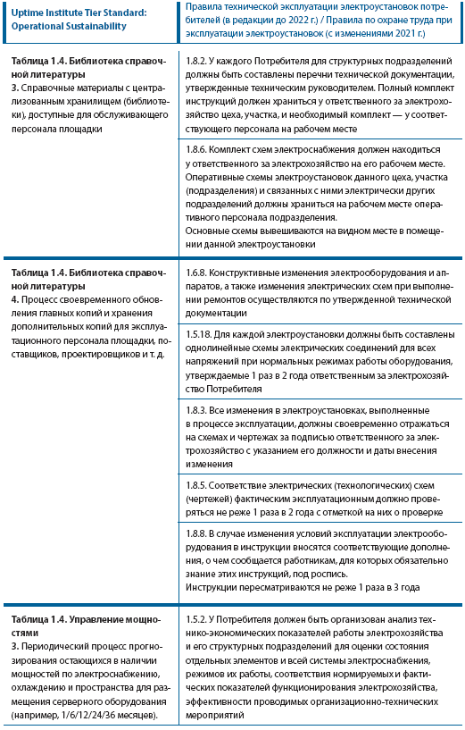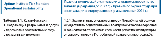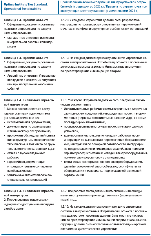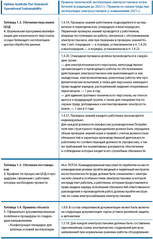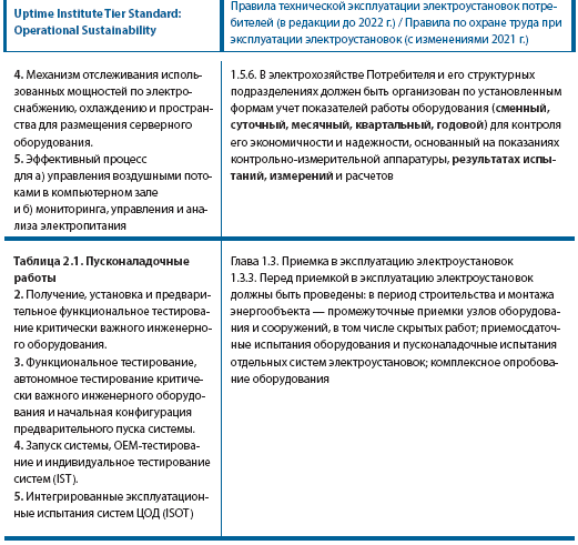 Соответствие Tier Standard: Operational Sustainability и Правил технической эксплуатации электроустановок потребителей (ПТЭЭП)