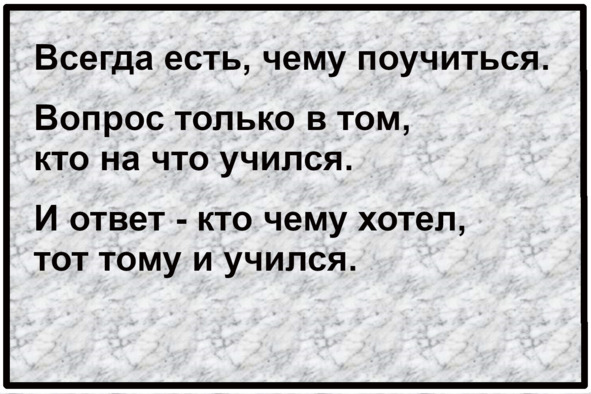 Да, были те еще времена…. А теперь-то молодежь какая нынче пошла, ужас просто? Так и напомни себе – времена Древнегреческие, что уже там про молодежь говорили. Да время не то уже, и не те они. Теперь это – их время. Им надо все быстрее, себя-то вспомни. Трудности другие, а работать им надо – не меньше нашего. /// Работа всегда…