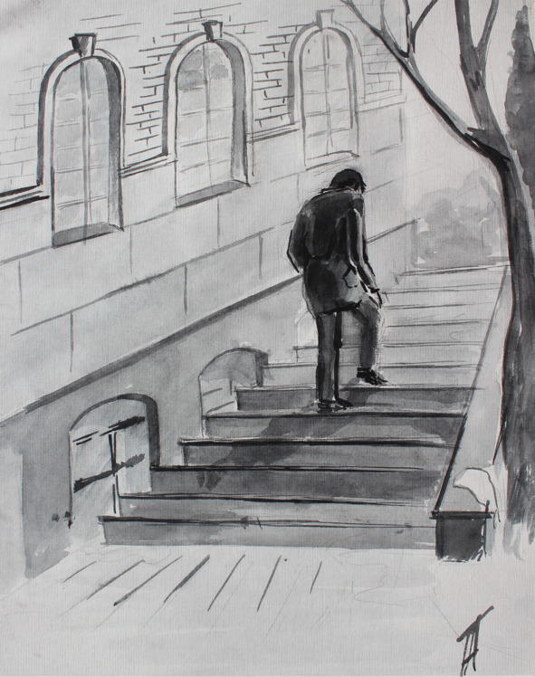 Потянуло в тихие улочки. Он робко идет по улице, меж подслеповатых лысеющих домов, кряхтит под неспешным его шагом постаревший снежок. Кто-то заключает в нежные объятия его сердце, осторожно берет за руку… и ведет. Адаму хорошо и покойно. Он чувствует, что не один: есть что-то другое… непознаваемое.