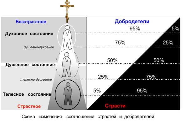 (Преп. Макарий Египетский, Духовные беседы, Беседа 5, 8) «Всякий человек доходит иногда рассудком и знает, что ни с чем несообразно дело, какое желательно ему сделать, однако же, поелику имеет к тому любовь и не отрекается от любви, то уступает над собою победу. Сперва внутри сердца его бывают брань, борение, и равновесие, и склонение, и перевес то любви к Богу, то любви к миру.»