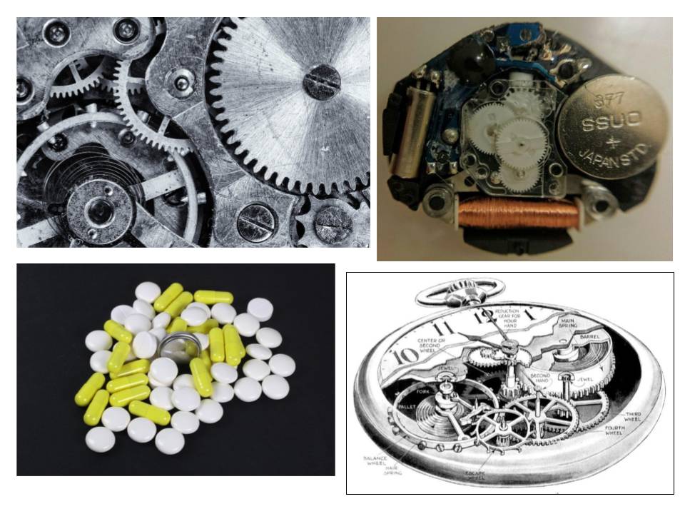 Engineer: So, let’s smoothly transition from discussing energy factors to considering architectural factors. Smoothly, because before we start discussing the architecture of the human nervous system, I wanted to tell you an interesting fact from the world of technology, related to both energy and architectural factors. We’ll be talking about the watch battery. This miniature power element, resembling a button or a pill, can now be found not only in wristwatches but everywhere: in toys, musical books and cards, remote controls, trinkets, and even in shoes that light up when you walk :) But initially, such batteries were used specifically in wristwatches, which determined their flat cylindrical shape. Why isn’t the shape square, or triangular, but specifically round? This is due to the architecture of wristwatches. In classic pocket watches, which are already 250 years old, and which at the end of the 19th century migrated from the pocket to the arm of a soldier, there are only three main interconnected systems:
