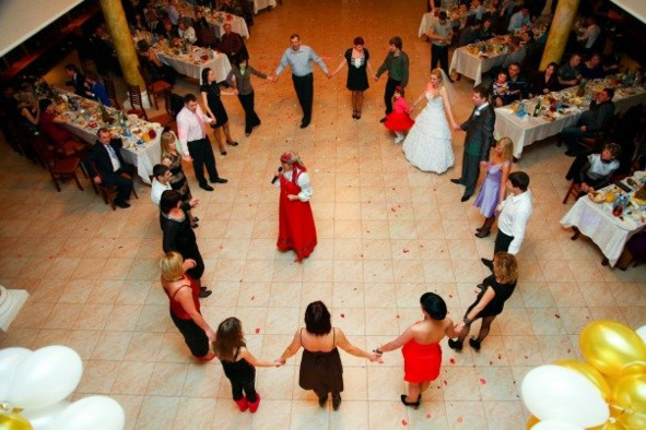 При выборе банкетного зала я бы рекомендовала обратить внимание на пространство для танцев и проведения развлекательной (игровой части). В практике было масса случаев, когда мы с молодыми придумывали шикарную программу, генерировали необычные фишки, а в итоге приходилось все «перекраивать» по ходу, потому что на 2 кв. м. реализовать задуманное было нереально. Отсюда и получается, что вместо интересных танцевальных, массовых, театрализованных игр, ведущий вынужден ограничиваться застольными играми, играми с привлечением максимум 2—4 гостей. В моей практике были случаи, когда из-за маленького пространства приходилось перекраивать программу и игровые блоки проводить на маленьком «пятачке». – пространство для танцев.