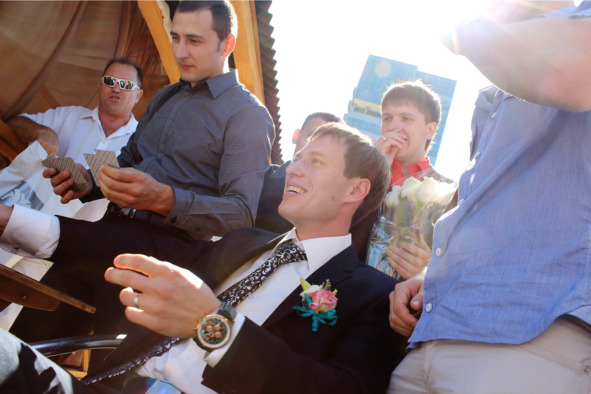 В ночь перед свадьбой я писала сценарий выкупа, готовила реквизит к нему. В итоге… чугунная голова в день свадьбы и абсолютно никакого желания расслабиться и отдаться празднику. Не повторяйте моих ошибок!