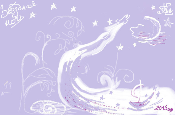 – Ну что, застыла?Как летать, забыла?Тебе же НебоКрылья подарило!Луна с улыбкой подмигнула,Поток мерцающих лучейПустила, и кивнула.Он об меня разбился,Дымкой стал.Окутал облачкомМельчайших звёзд,На плечи пал…Сверкающая дымкаРук моих касалась,И крыльями мерцатьНа них осталась.Богиня ночи