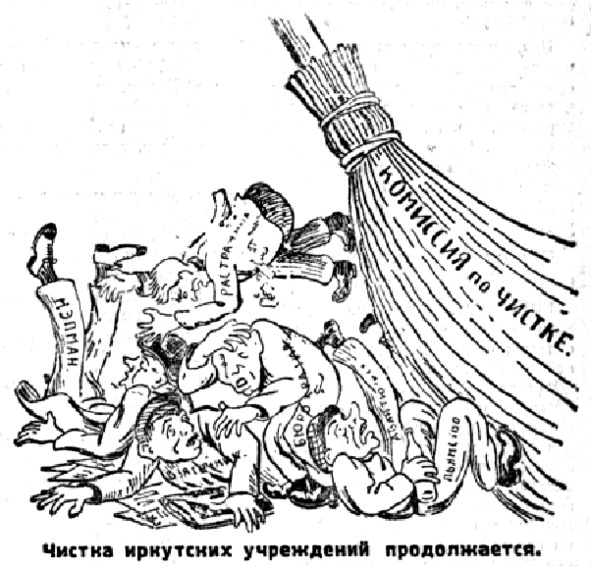 Комиссия по чистке советских учреждений, организованная по постановлению Сибкрайисполкома в связи с злоупотреблениями Лосевича и др., на своих заседаниях с 18 по 22 октября проверила 112 сотрудников горкоммунотдела, его п/отделов, ветеринарной станции, гортеатра и завдомами.