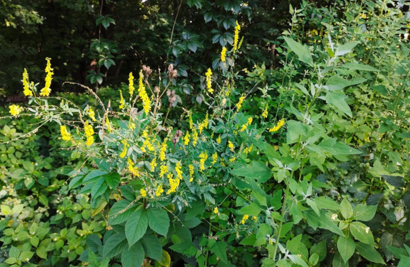 жёлтый Донник увит девичьим виноградом, а справа – Марь белая