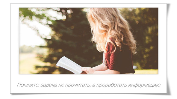 Помните, что задача не просто прочитать, а проработать информацию, пропустить ее через себя и взять себе инструменты, нужные именно вам, в вашей ситуации.