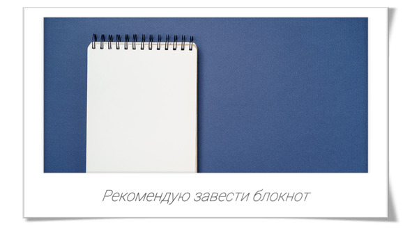 Я так же рекомендую вам завести отдельный блокнот или тетрадочку для прохождения этого курса. И держать ее под рукой на все время прохождения тренинга, плюс еще, как минимум, несколько недель.