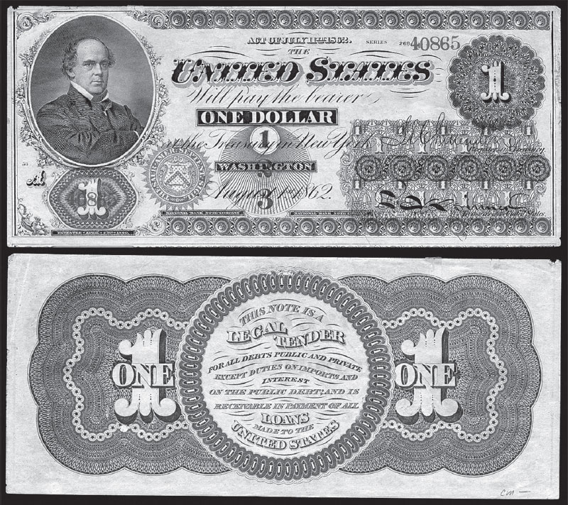 Иллюстрация 5. Изображение одного доллара Greenback, впервые выпущенного в 1862 году (с портретом Сэлмона Чейза)