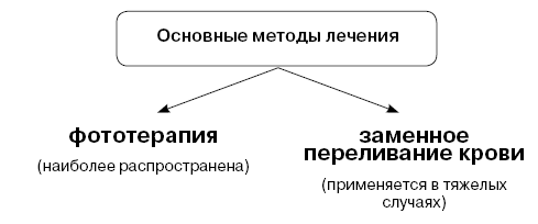 Длительность и интенсивность фототерапии, а также кратность и объем переливания крови зависят от массы тела при рождении и уровня билирубина. Во время проведения фототерапии глаза новорожденных и половые органы мальчиков должны быть защищены.
