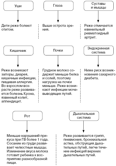 Согласно научным исследованиям, у детей на грудном вскармливании (ГВ) отмечается следующая позитивная динамика:
