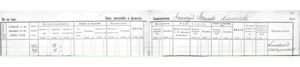 Согласно этого списка, Фёдору первоначально 1 августа (1907) выдана ссуда 17 рублей и 124 рубля по полугодовой ведомости.
