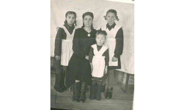 Слева Векшина Галина (Иванчик). По центру Петухова Екатерина Фёдоровна, маленькая Петухова Тамара (моя мама), справа – Векшина Нэлли (Сергеева). Три сестры и их мама.