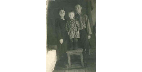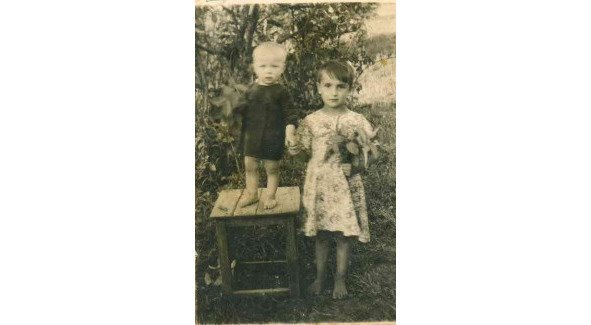 Мама вспоминала, что она, когда была маленькой, даже меньше, чем на фотографии (где она стоит на табуреточке с сестрой Галей), и ещё еле-еле ходила, то всё время просилась к своей маме на руки, чтобы та несла её по Андрюшино.