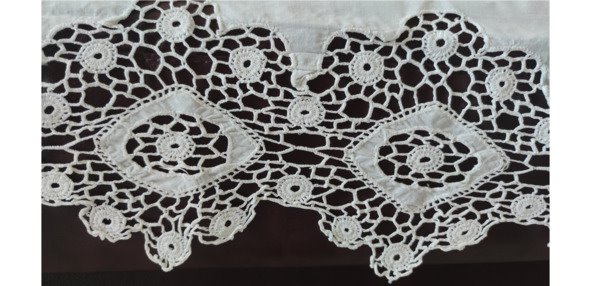 Подобные строченые ткани лежали в доме и на этажерке. Их баба Катя называла дорожками.