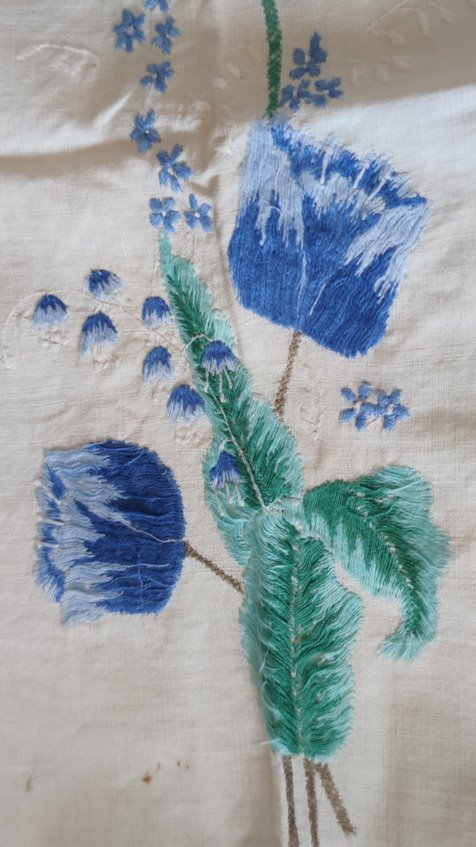 Эти кусочки ткани с вышивкой напоминают мне о доме, где родилась моя мама, где жили родные любимые люди, о том времени, когда баба Катя будучи молодой и красивой рукодельничала у окна и пела свои красивые песни.