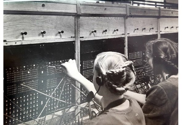 В большом помещении много кабинок – маленьких закуточков с наполовину стеклянными тяжелыми дверями, где на стене в каждом из них висит черный телефонный аппарат. Все стены и двери на телеграфе деревянные не красивого желтоватого цвета с небольшим блеском.