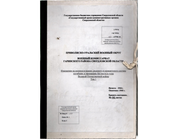 Военно-учетная специальность – 2, сержант, социальное положение – рабочий, беспартийный, русский, гражданской специальности нет, уроженец с. Троицкое, Гаринского района Свердловской области, отец – 60 лет, мать 55 лет, проживают там же).