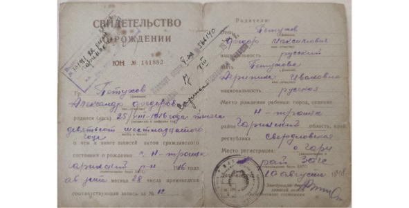 Мать – Петухова Агриппина Ивановна – русская, 08.06.1888 – 19.04.1945.