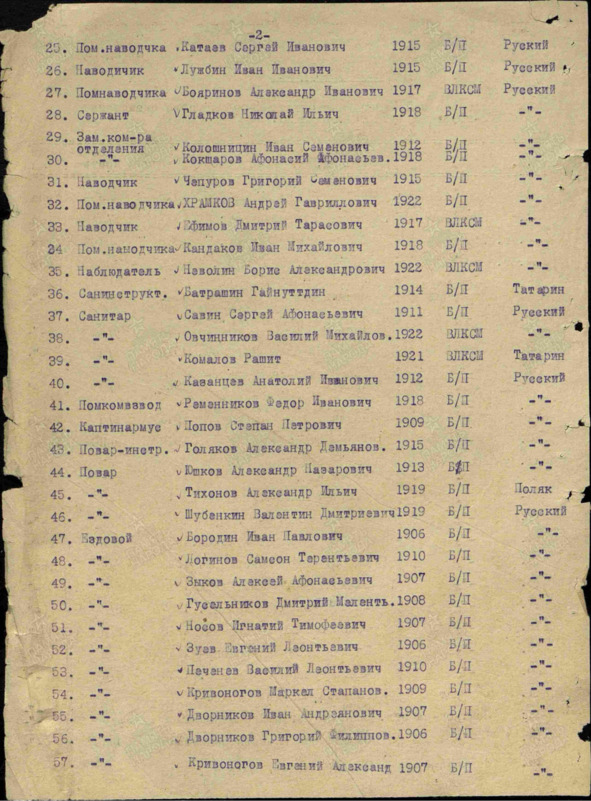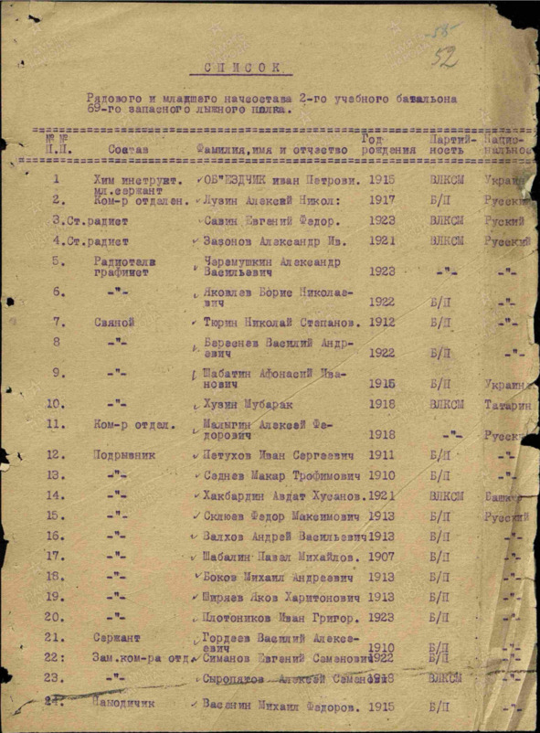 Список рядового и младшего начсостава 2-го учебного батальона 69-го запасного лыжного полка, первый лист35