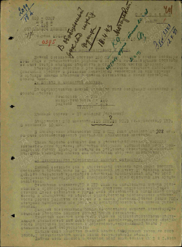 Рапорты.№ документа: 395, Дата создания документа: 17.04.1943 г. Архив: ЦАМО, Фонд: 466, Опись: 5866, дело: 272, Лист начала документа в деле: 401, авторы документа: 290 сд, полковник Климахин, майор Кузьмин, описывает боевую операцию: нет данных.
