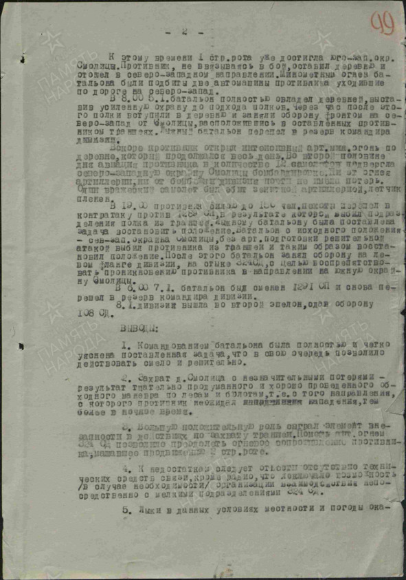 Батальон выступил в 18.00 час. 04.01 с исходного положения – 0, 8 км. южнее Хут., что 1,2 км. юго-восточнее Смолица.