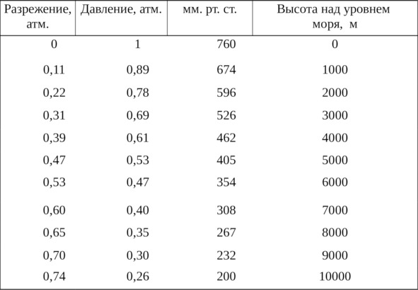 создавали воздействием на животных низким разрежением (Лир Э. В., Стиней К., 1967). Для этого крыс помещали в барокамеру объемом 0,09 м, где скорость откачивания воздуха превышала скорость его поступления, нужное разрежение создавали с помощью вакуумного насоса. Для контроля барометрического давления использовали вакуумметр контрольный типа ВКО, с верхним пределом измерений 1 кгc/cм, класс точности 0,6. В барокамере разрежение увеличивали постепенно до 0,70 атм., что соответствовало 9 тыс. м над уровнем моря. Значение разрежения высоте над уровнем моря определяли по таблице 1. Модель гипоксического состояния 3 2