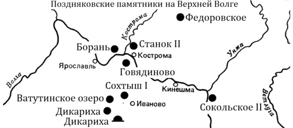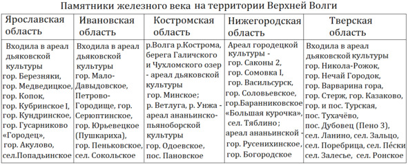 Интересующий нас регион представлен в основном дьяковской культурой, немного городецкой на юге Нижегородской области и ананьинско-пьяноборской – в Поветлужье.