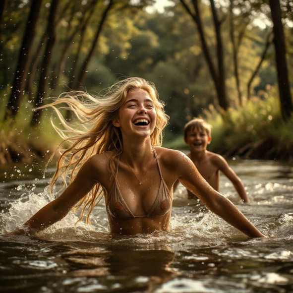 – А ты ныряй, если боишься! – дразнила Элли, уворачиваясь от его водяной «бомбы». Она нырнула. Мир погрузился в зеленовато-золотистую тишину. Пузырьки воздуха серебряными горошинами убегали вверх. Она видела песчаное дно, проплывающие травинки, собственные руки, рассекающие прохладную толщу. Звуки снаружи – смех Вовки, плеск – доносились приглушенно, как из другого измерения. Она была частицей. Частицей этой воды, этой реки, этого сияющего дня. Никаких мыслей. Только тело, вода, движение, свобода.