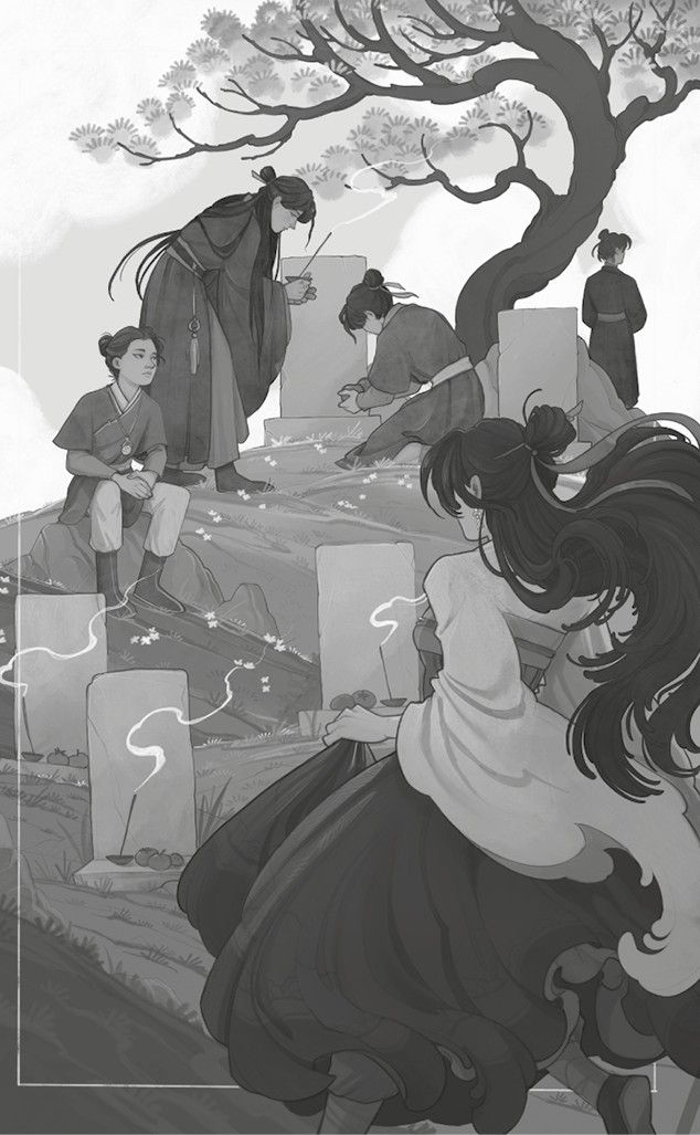 Шэ Юэ склонилась вместе с остальными, мысленно обратившись к отцу. Выйди он сейчас из-за камня, она рассказала бы ему о всяких глупостях: сколько светлячков и сверчков они с Янь-янем поймали летом, какие техники она освоила и как у неё всё не выходит удар «лосось идёт против течения». Рассказала бы про всё на свете…