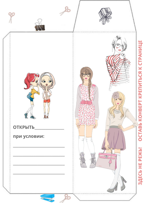 • а сейчас, заполни первый конвертик милым подарком, но, чур, условие его вскрытия, поставлю я – в этот же день ровно через год, при условии, что ты выполнишь все остальные условия, ответишь на все вопросы и заполнишь все пустые строчки в этой НЕ книге, созданной с большой любовью специально для тебя!