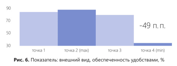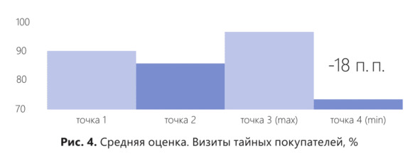 Осталось выяснить, за счет чего так сильно исказились средние величины. Ответ мы найдем на рис. 6. Торговая точка 2 была оборудована лучше всех по сети, там лучший ремонт и новая мебель.