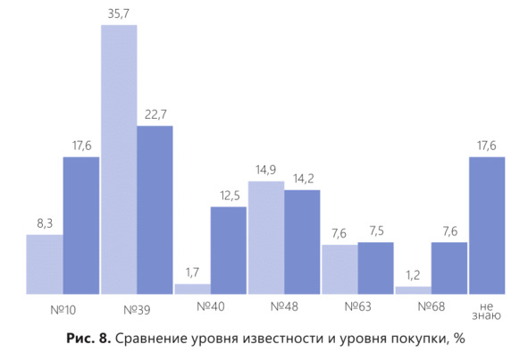 Для замеров по покупкам предлагалось посмотреть на список строительных компаний. То есть замеры известности проводили спонтанные, а замеры покупок – наведенные (с подсказкой). Именно эта ошибка в методике привела к цифрам, вызывающим вопросы без ответов.