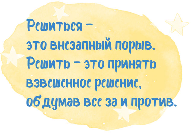 В этой главе я хочу подробно рассказать о процессе принятия решения. Начну с того, что слово «решилась» я предпочитаю заменить на «решила». Чувствуете разницу? Решиться – это внезапный порыв. Решить – это принять взвешенное решение, обдумав все за и против.