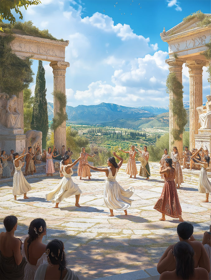 В Древней Греции танец был важной частью театральных представлений, таких как трагедии и комедии. Хореография использовалась для выражения эмоций, драматических событий и для усиления воздействия на зрителей.