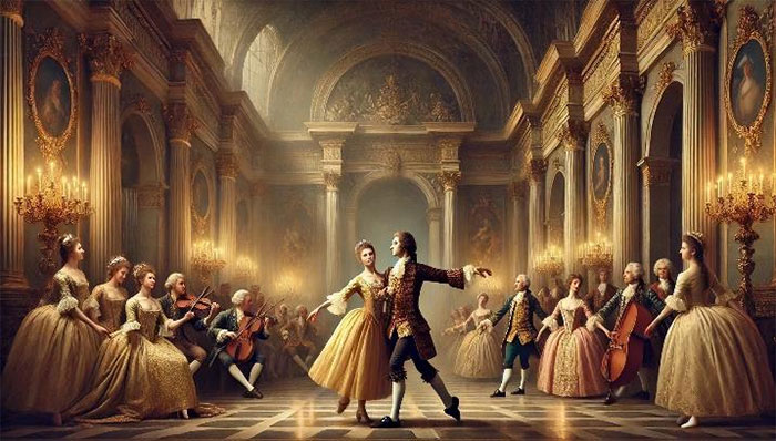 Людовик XIV, известный как «Король-солнце», обожал танцы и сделал их частью жизни французского двора. Людовик был страстным танцором и сам исполнял роли в королевских, театральных постановках. Он основал первую Королевскую академию танца, что сделало балет официальным искусством. Постепенно танцевальные движения стали сложнее и утонченнее, а балетные представления стали отдельным видом театра. Сначала балет рассказывал мифы и легенды, но вскоре превратился в искусство, способное передавать самые глубокие чувства.