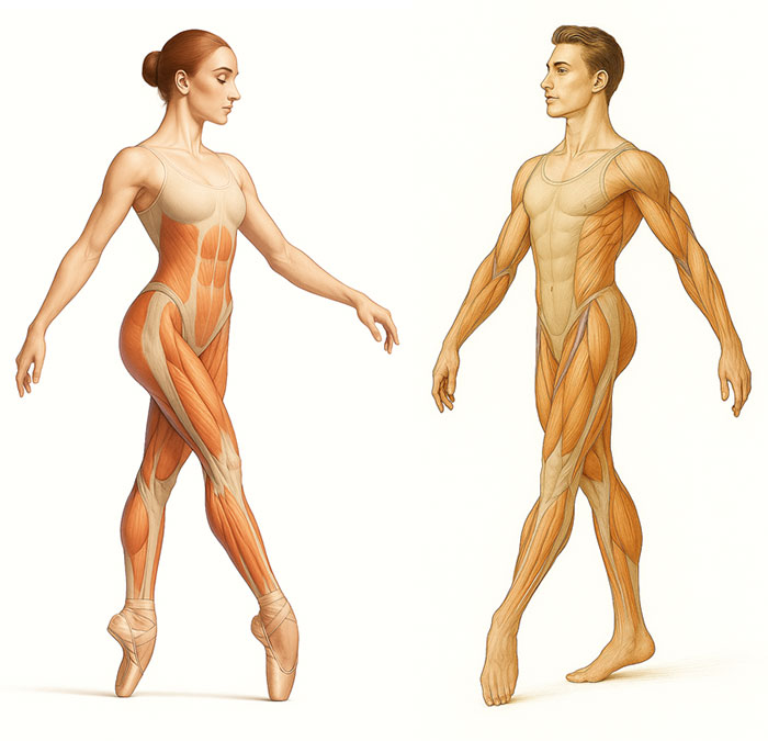 • Икроножная и камбаловидная мышцы (Gastrocnemius, Soleus): отвечают за подъем на пуанты и полупальцы.