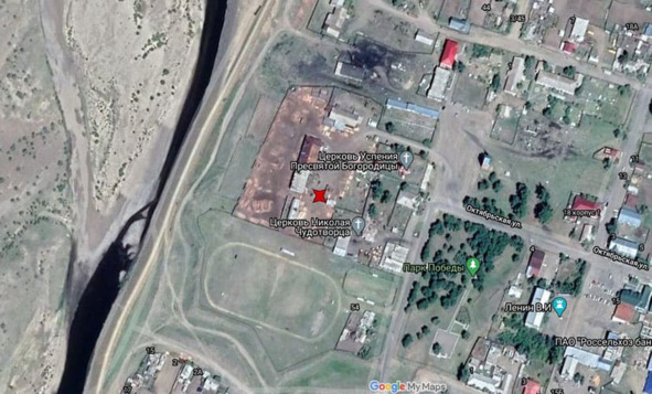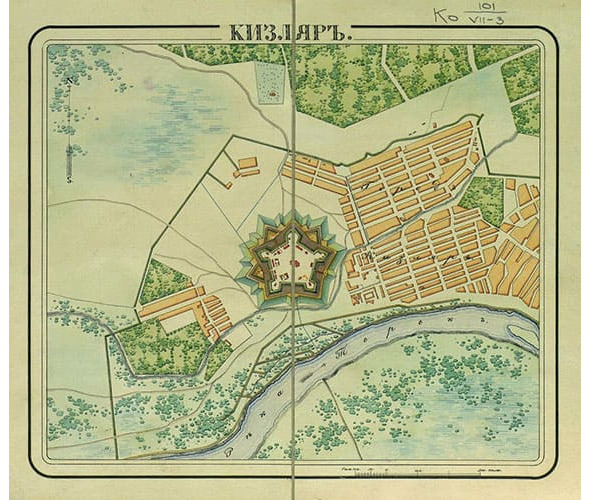 Звезда крепость на предполагаемом месте расположения города-форпоста Терки (Терский город, Терский острог), построенного русскими войсками на Северном Кавказе в XVI – XVII вв. Между современными населёнными пунктами Мангулаул, Новый Бирюзяк, Старотеречное (Дагестан)