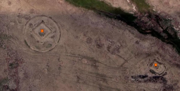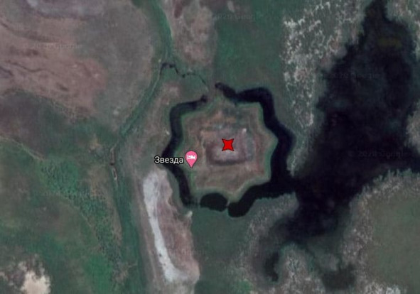 Порой они и вовсе стоят где-то в совершенно диких местах – в «чистом поле», в степи, в горах, в тех местах, которые принято именовать «неисторическими», где и близко нет никаких современных поселений. Никаких «рукотворных» сооружений – даже развалин – поверх таких крепостей также нет – есть лишь общие очертания звезды, сформированные земляными валами или изгибами реки.