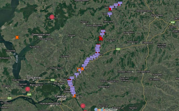 Общая карта укреплений Великой Заволжской стены в Самарской области