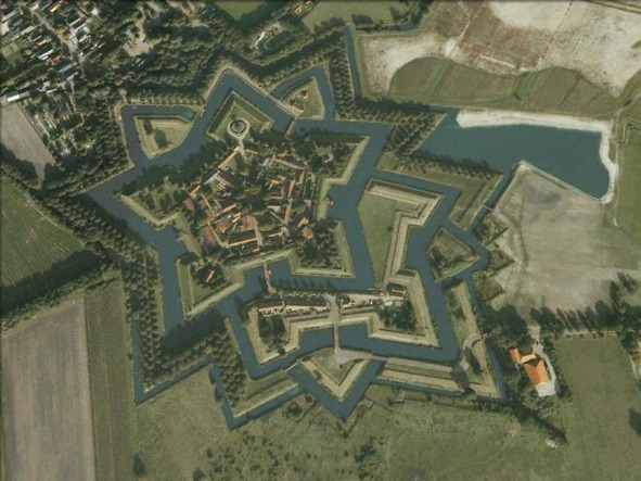 – близость к воде, рекам – почти обязательное условие, за редким исключением. Часто крепости-звезды вообще расположены на островах в форме звезды. Кто, зачем и как проделывал эту титаническую работу по созданию фигурных (насыпных) островов?