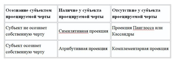 проекция: перенос на объект личной и осознаваемой черты личности. Атрибутивная